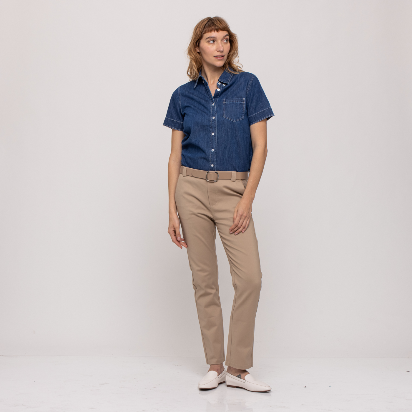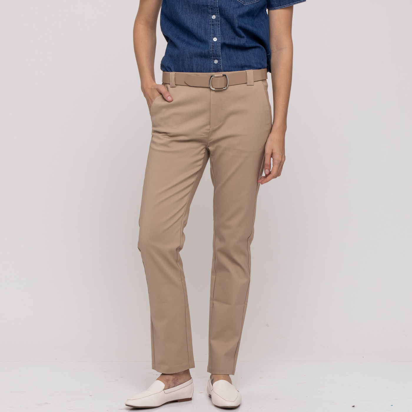 מכנס קלאסי גברי בגזרה נשית, ישר ומדויק, עם פספול מטאלי דק בקצה הכיס הקדמי , עשוי 53% כותנה 44% ניילון 3% אלסטן ,מכנס על זמני שתמיד צריך במלתחה. דוגמנית בגובה 175 ס״מ לובשת מידה SMALL